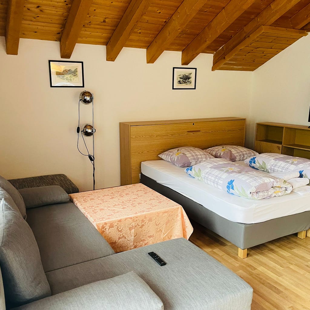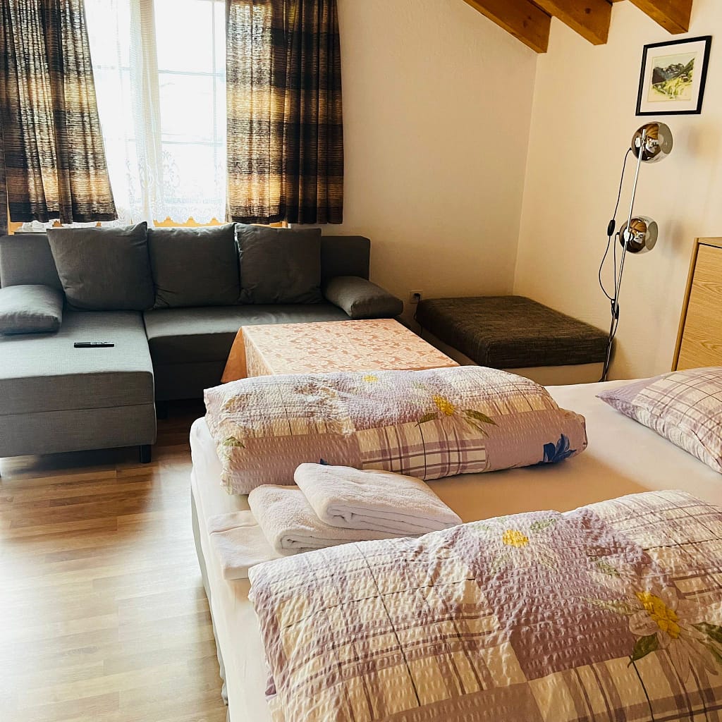 Im Restaurant Pizzeria & Bed & Breakfast Sternen in Elm im schönen Kanton Glarus heißen wir Sie herzlich willkommen. Unsere gemütlichen Zimmer bieten einen wunderbaren Blick auf die Berge und laden zum Entspannen ein. Kostenloses WLAN sowie Privatparkplätze stehen Ihnen selbstverständlich zur Verfügung. Einige Zimmer verfügen zudem über einen Balkon, von dem aus Sie die Natur noch intensiver genießen können. Ein gemeinsames Badezimmer mit Badewanne steht allen Gästen bereit. Für einen angenehmen Aufenthalt sorgen außerdem Flachbild-TV und die familiäre Atmosphäre unseres Hauses.